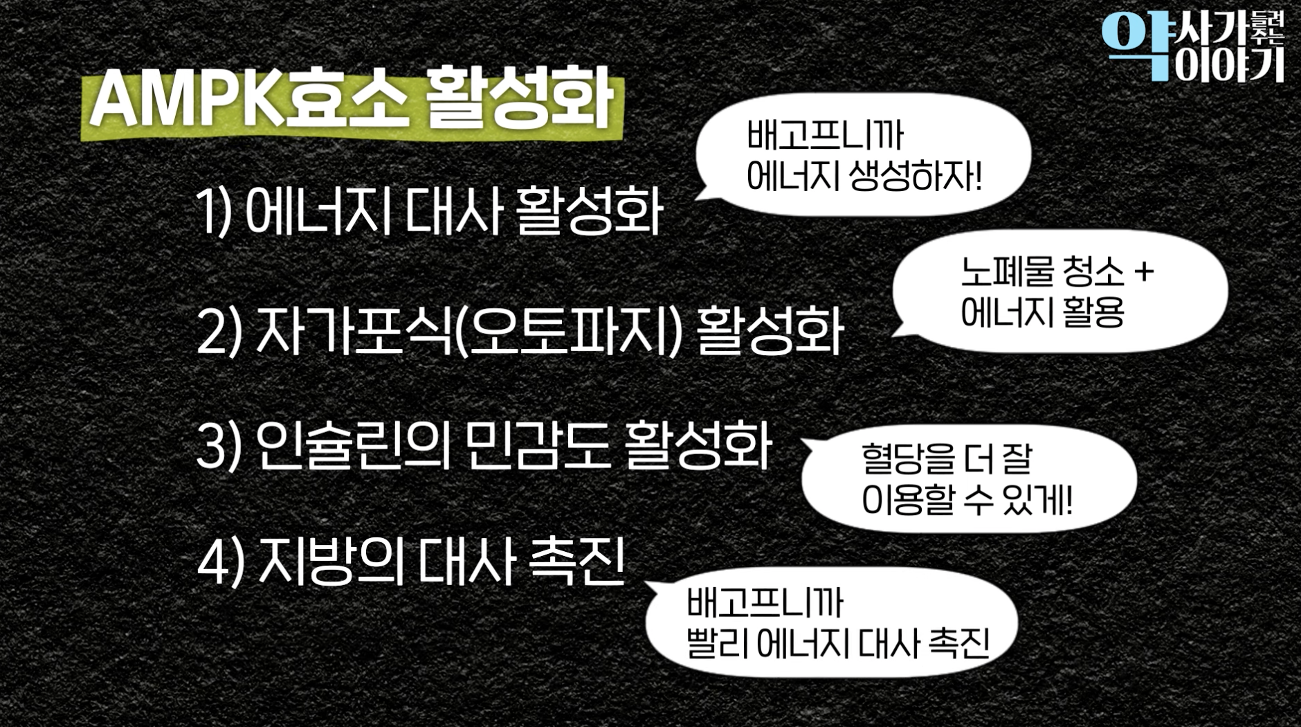 - 메트포민과 비슷한 양리활성 작용을 보여줍니다.